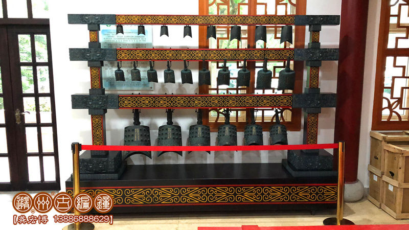 2019年,隨州古編鐘公司按客戶要求定制生產(chǎn)的24件編鐘(南樂(lè)歌鐘),編鐘為錫青銅鑄造并按442Hz調(diào)音,分3層懸掛方式排列,音階達(dá)3個(gè)半八度,可以演奏古今中外樂(lè)曲,可以和任何樂(lè)器搭配演奏。編鐘底座還配有萬(wàn)向滑輪,在舞臺(tái)上可以很方便移動(dòng)位置,為客戶帶來(lái)了使用便利。