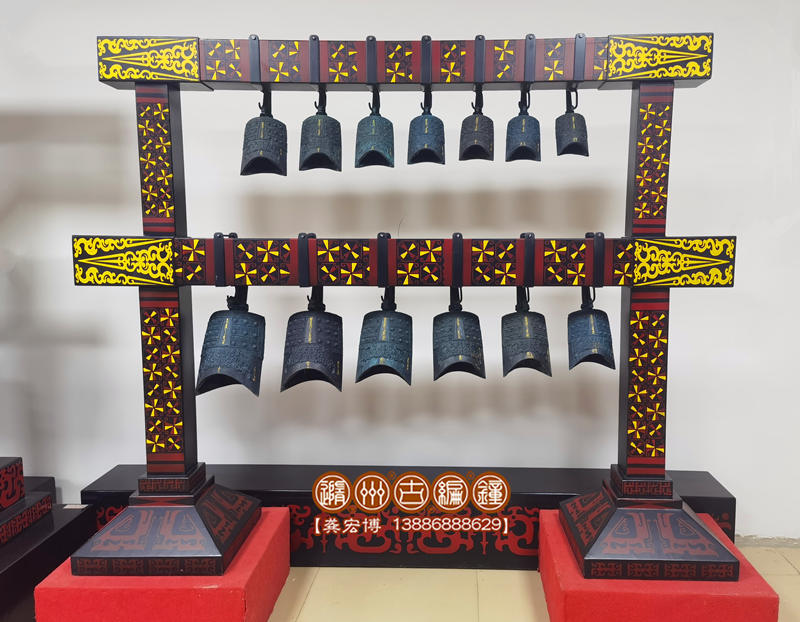 13件編鐘、小型編鐘,是根據(jù)曾侯乙編鐘設(shè)計(jì)制作,編鐘為青銅鑄造,采用標(biāo)準(zhǔn)音高A=440Hz調(diào)音,音階G4—A6。編鐘大梁采用優(yōu)質(zhì)松木制作,表面噴漆,彩繪花紋;配有保管編鐘用的木箱,便于運(yùn)輸和儲(chǔ)存。這套編鐘適合教學(xué)課堂展示使用,搬運(yùn)比較方便,音階齊備,演奏方便簡(jiǎn)單。現(xiàn)貨產(chǎn)品價(jià)格優(yōu)惠,歡迎咨詢(xún)!