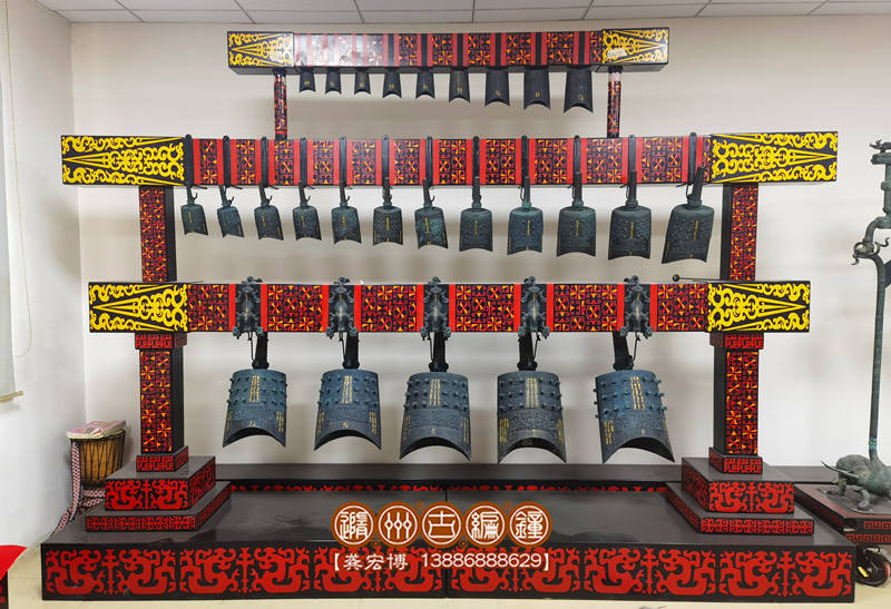 簡介:26件木結(jié)構(gòu)演奏級(jí)編鐘,是一套專業(yè)演奏類古樂器,整套編鐘分3層懸掛排列,由長短不同的三根彩繪橫梁和4個(gè)青銅佩劍武士立柱及2根圓立柱組成