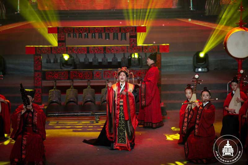 內(nèi)蒙古烏海市群藝館編鐘樂團在2020年春節(jié)藝術(shù)晚會的演出照片